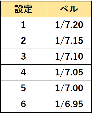 以下が設定別のベル確率になります。